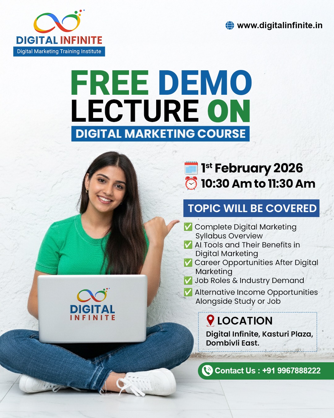 Join the best online digital marketing course in Dombivli by Digital Infinite. Become a digital marketer with our comprehensive program to elevate your career to reach new professional heights and excel in today’s competitive landscape in 13 weeks.